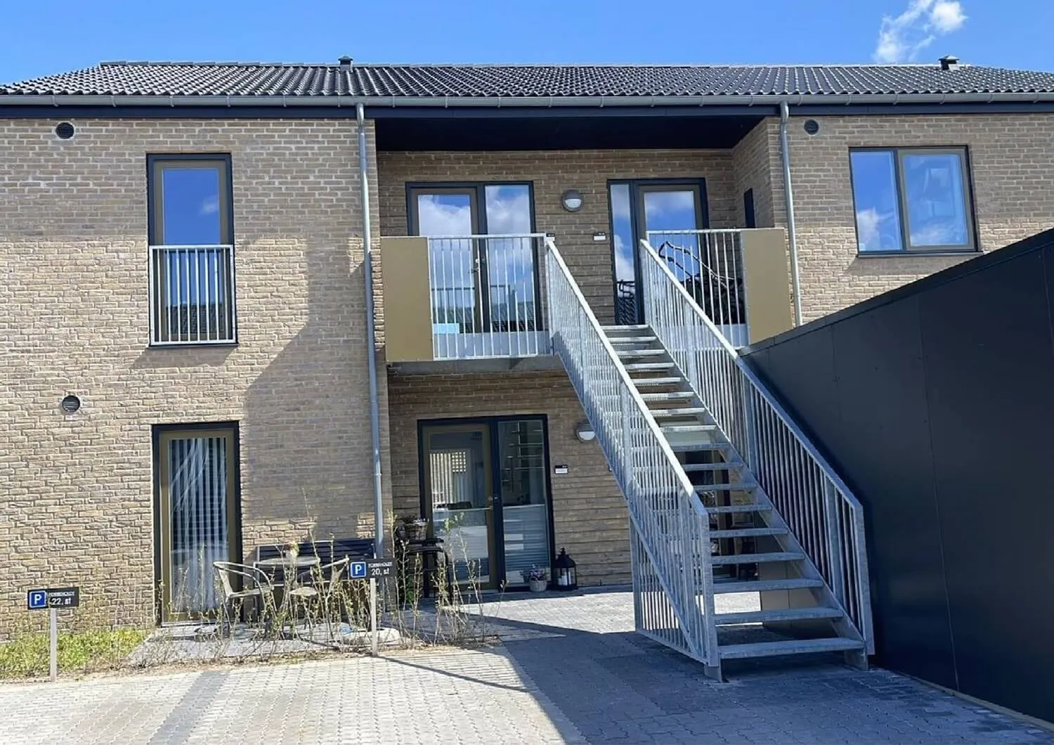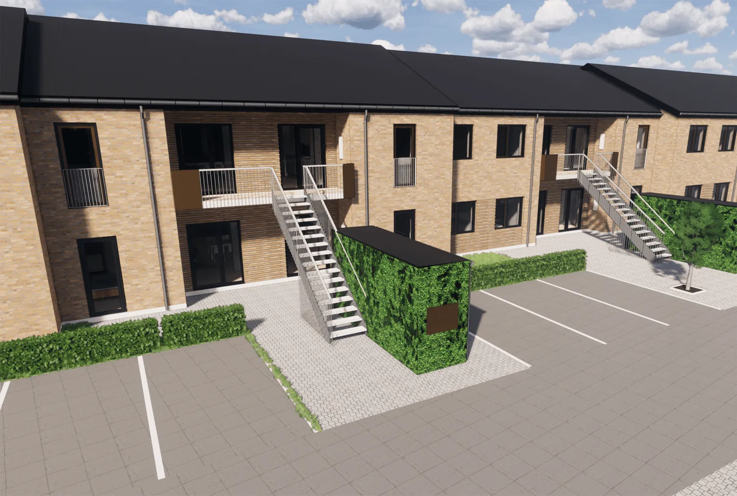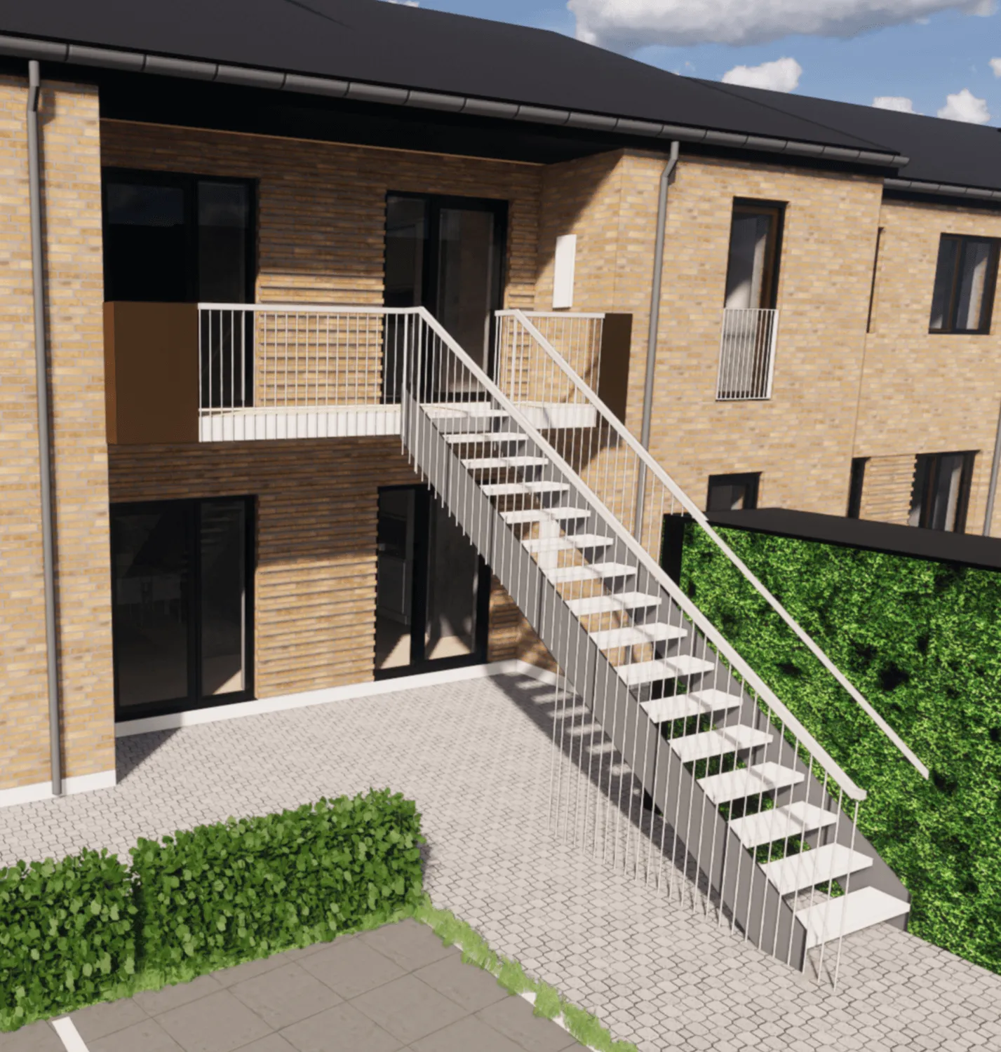 Dybroparken var et af vores projekter i 2019. Hertil har vi leveret og monteret udvendige ståltrapper, værn og gelænder, altaner og franske altaner.